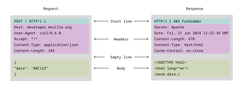 Anatomy of an HTTP request and answer. Image credits: MDN Web Docs